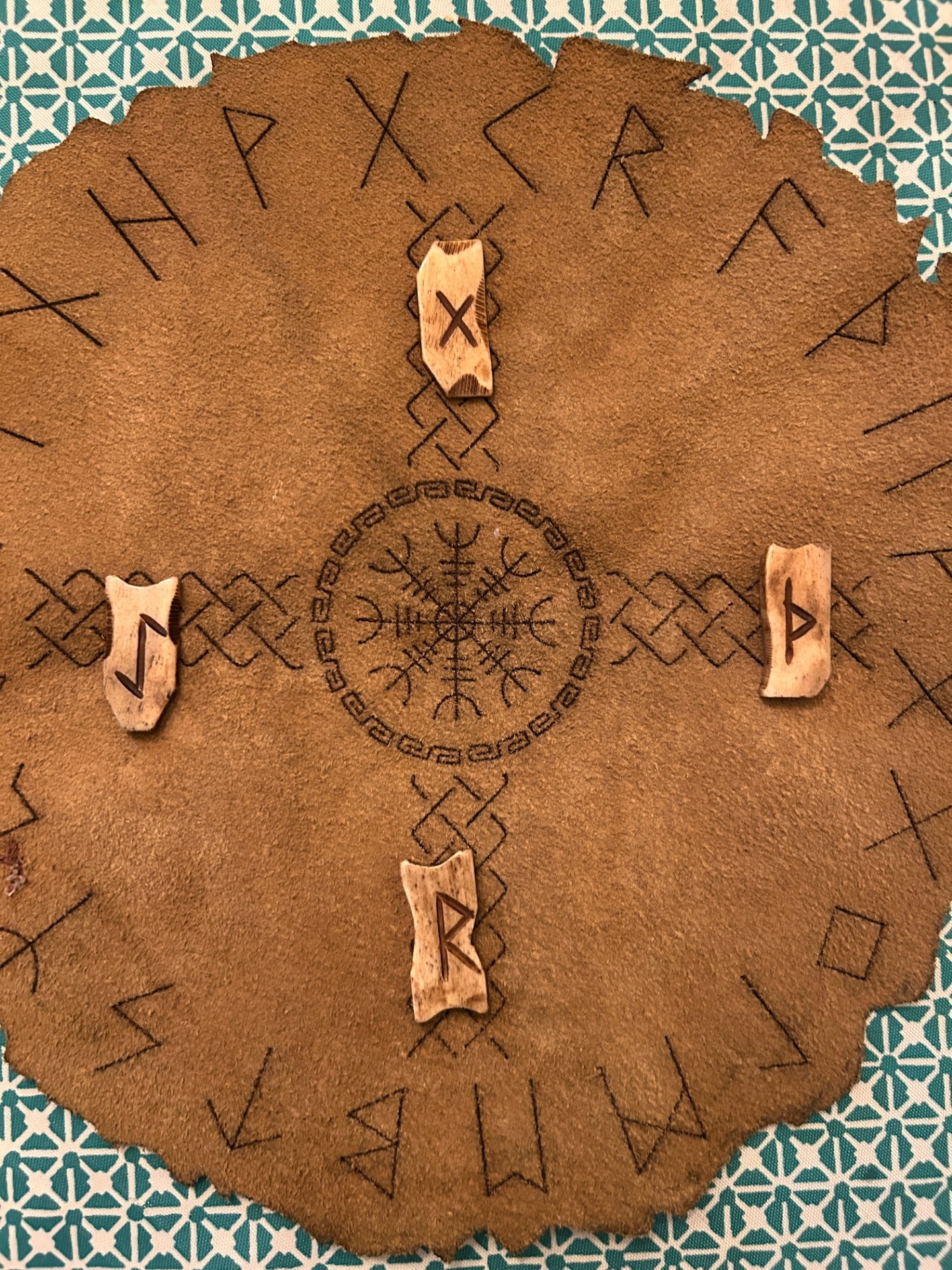Raidho – “The psychological meaning is self-mastery, freedom from imprisonment, and the story “form” in the psyche. Its energy is presence, rhythm, and cosmic cyclical law. When it appears in divination, it means journey, ordered growth, justice, action, sound advice, or rationality.